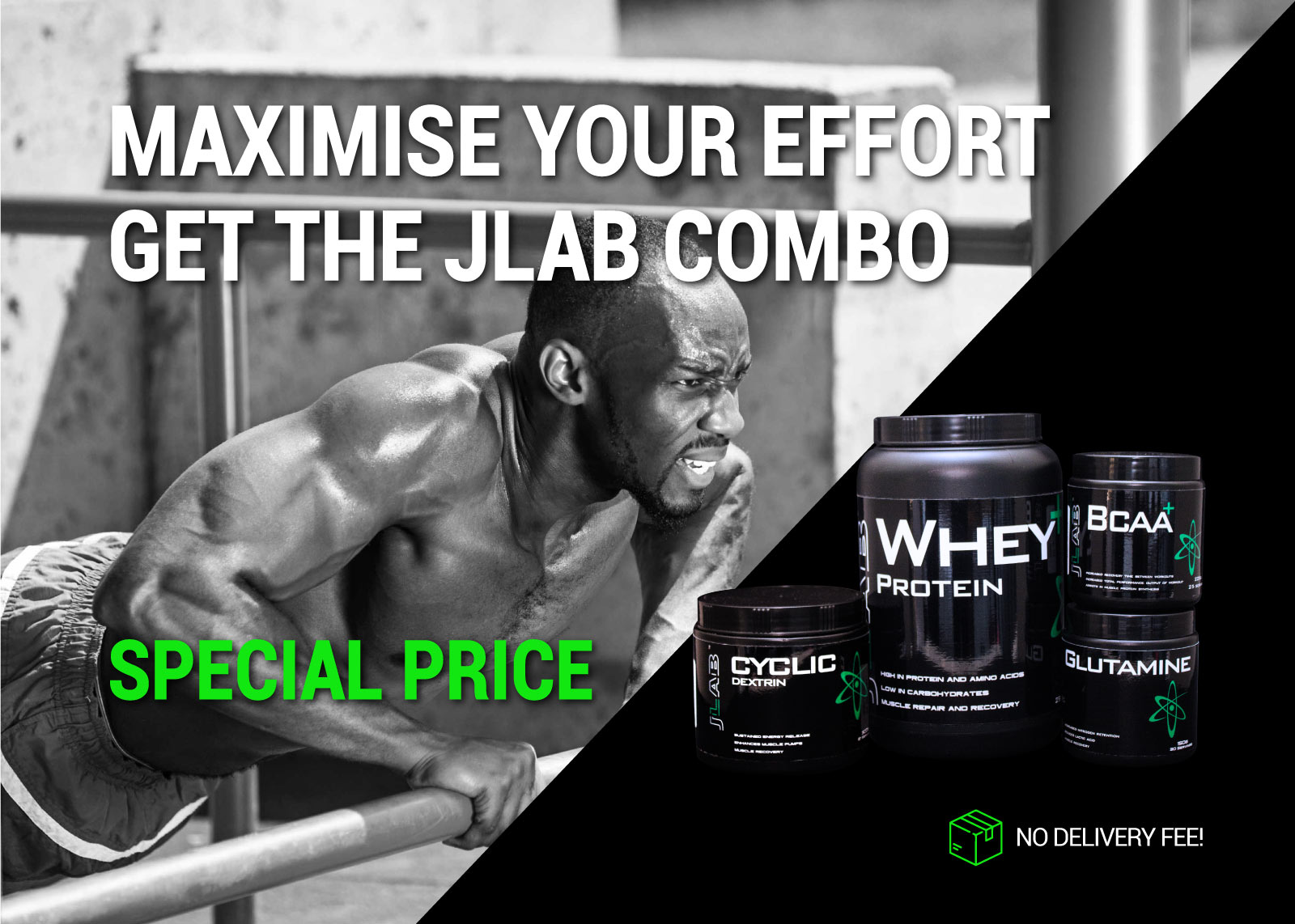 Unlock the power of synergy with the JLab Combo – a selection of our premium products that not only enhances your nutrition and fitness journey but also saves you money. Experience the delicious satisfaction of JLab Whey, a powerhouse of muscle-nourishing protein. Amplify your workouts and recovery with JLab Nhanced BCAA, the secret weapon behind muscle growth and endurance. Fuel your body with JLab Cyclic Dextrin, the fast-absorbing carbohydrate that replenishes glycogen stores for peak performance. Elevate your recovery game with JLab Glutamine, a key player in muscle repair and immune support.